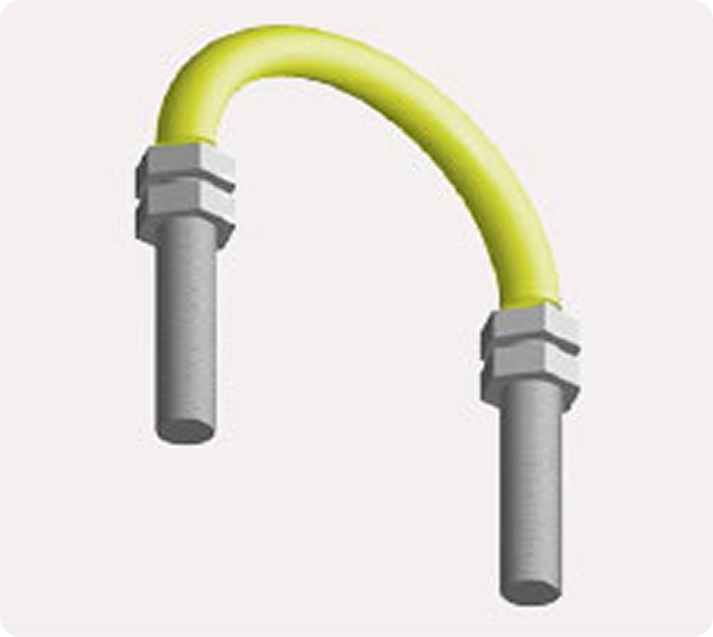 The polyurethane coated U-bolt are a seamless, vulcanized material that can be applied to all types of U-bolts. These U-bolt’s are excellent for eliminating corrosion problems on piping in refineries, chemical plants, paper mills, rigs and the shipping industry.