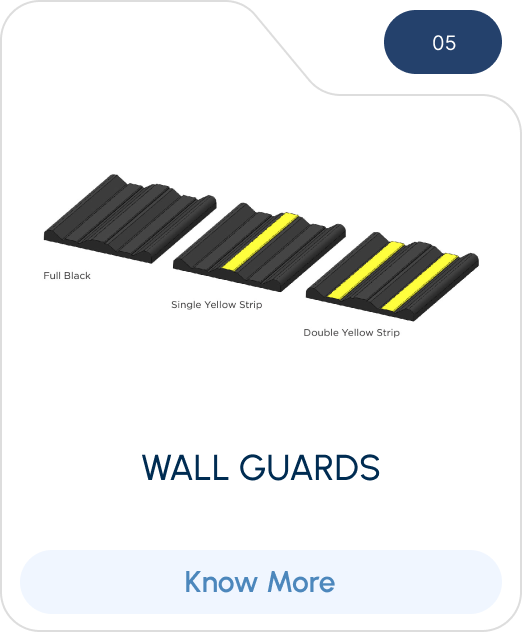 Exposed areas in parking buildings and docking bays are prone to damage, both to the wall surfaces as well as to the vehicles. Our wide range of building protection systems ensures safety and protection and is an ideal choice when it comes to providing solutions for protecting these areas. Products such as speed breakers, to slow down vehicular traffic, rubber guards for wall and corner protection, wheel stopper for protection between each vehicle in the parking slots, dock bumpers to protect docking bay walls from backing heavy trucks are essential to all projects and go a long way in reducing maintenance and thereby giving huge cost benefits to building owners.