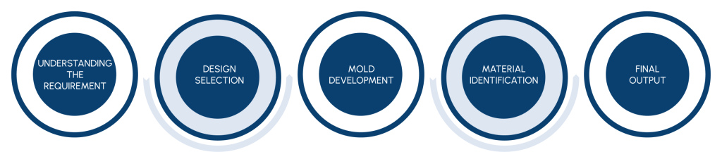 Our product designers, engineers and skilled technicians, work with our customers in understanding their requirements and work through the process from design selection, mold development to material identification.